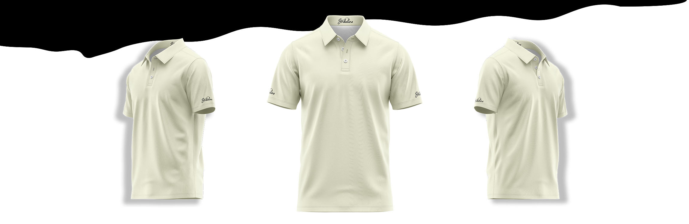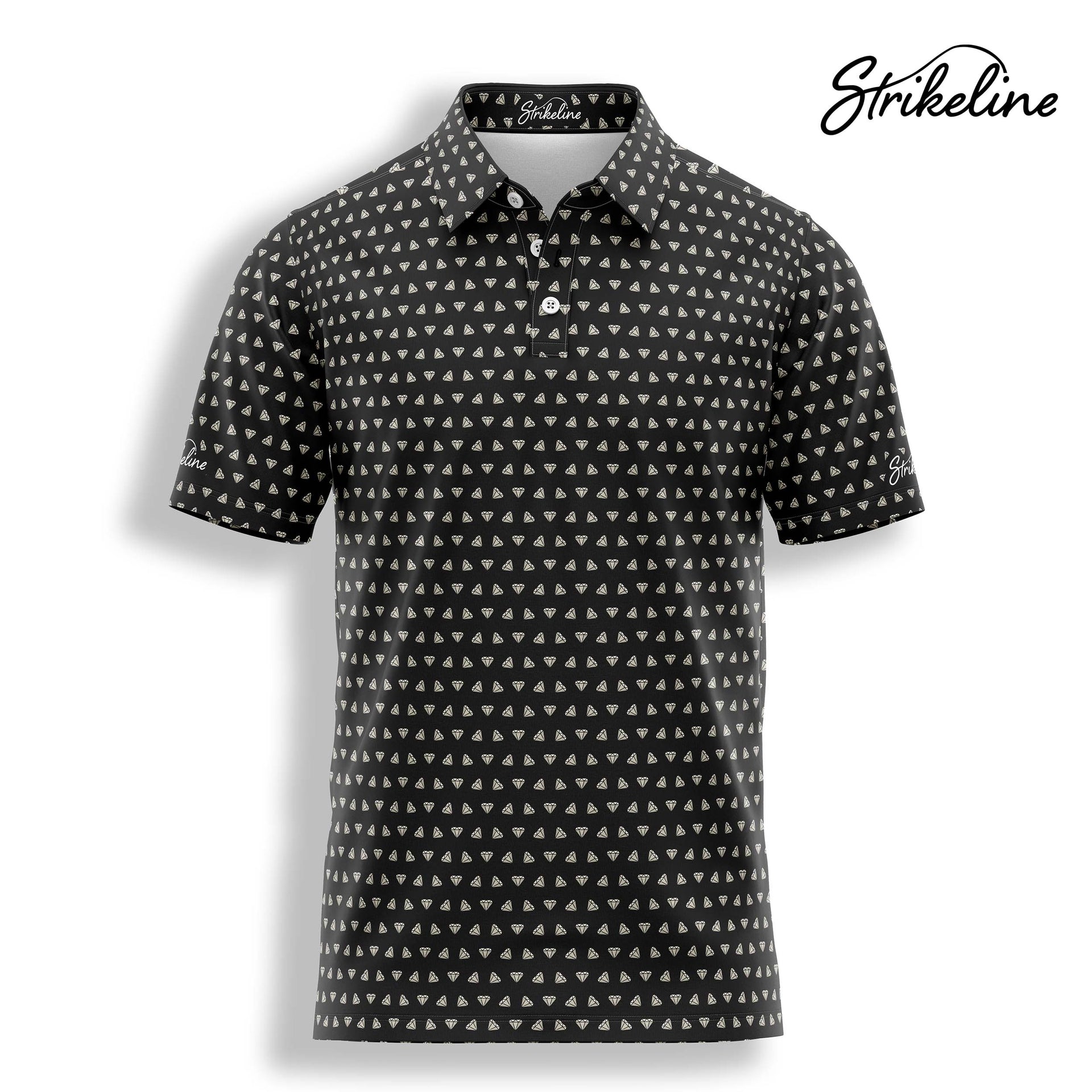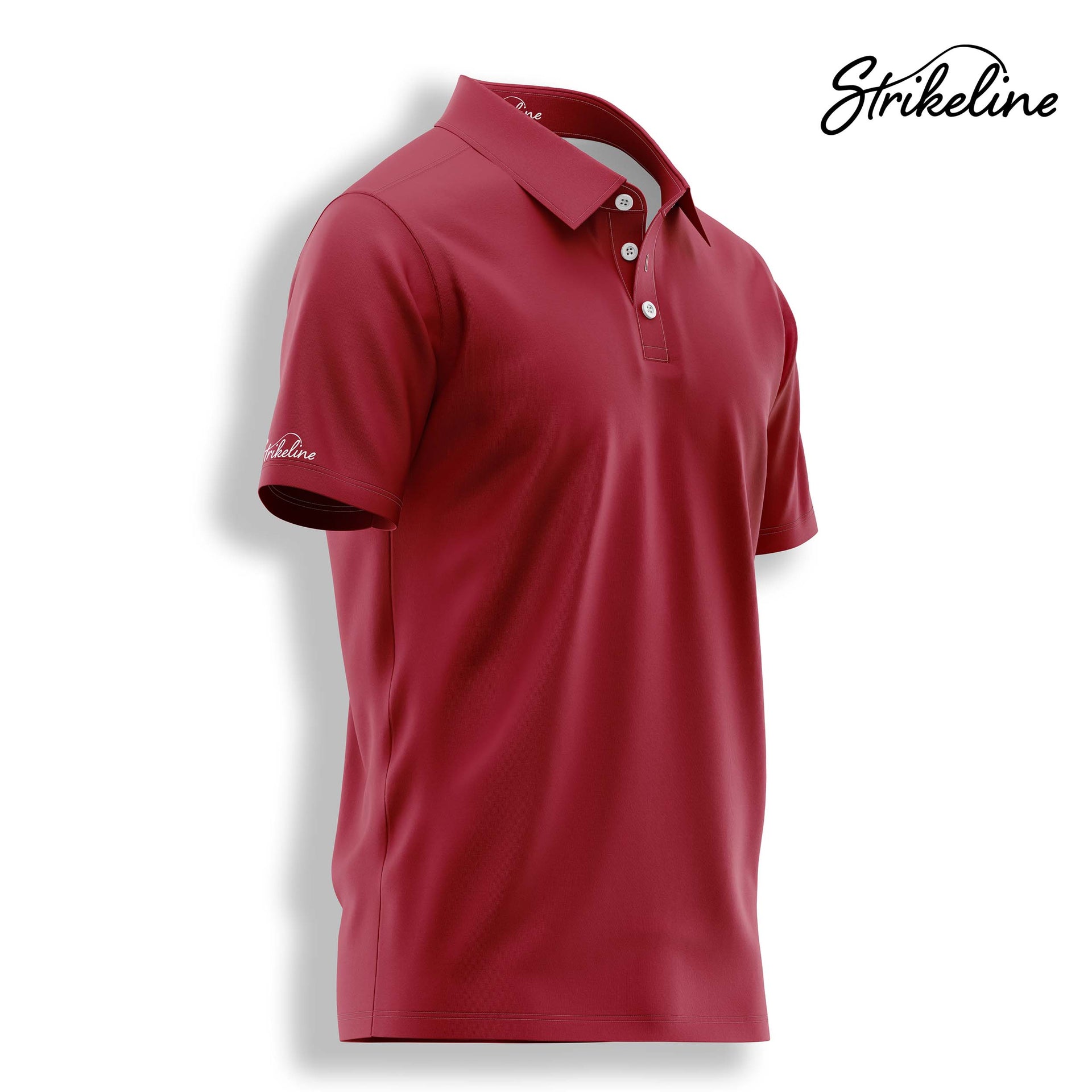 All polos are crafted with StrikeFit™ fabric — a performance blend of 95% polyester and 5% spandex. This provides 4-way stretch, breathability, and moisture-wicking comfort that holds its shape through every round.